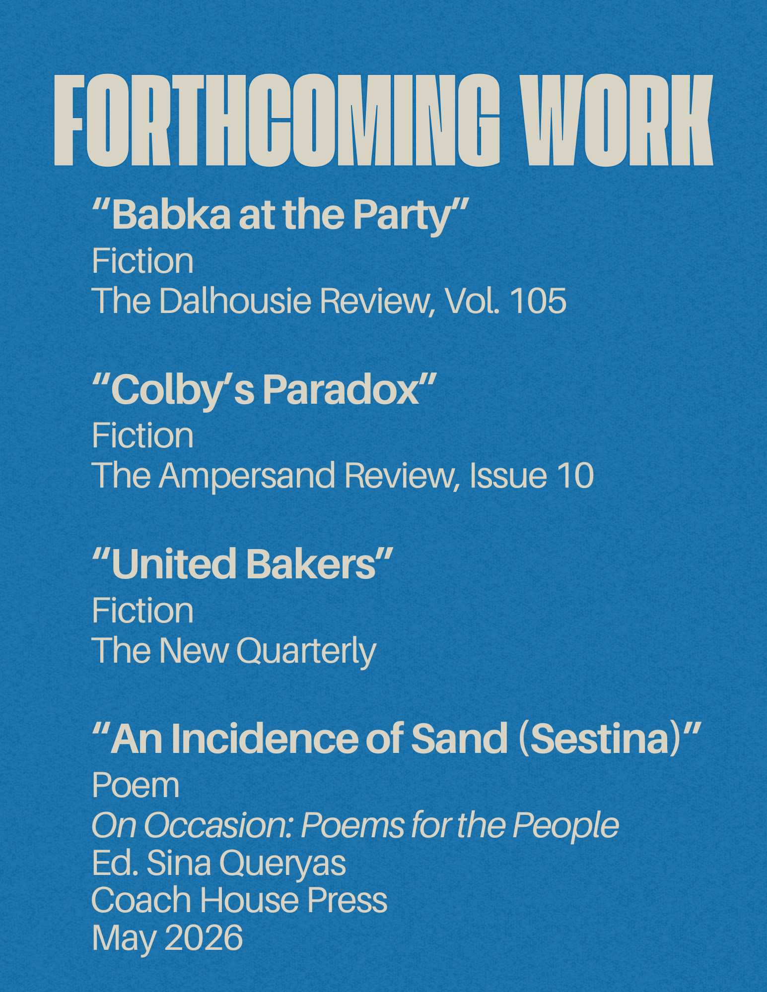 “Tasmanian Shores,” a short story published in Prairie Fire 44.4 was chosen by Zsuzsi Gartner to be in Best Canadian Stories 2026. Look for it in fall 2025!